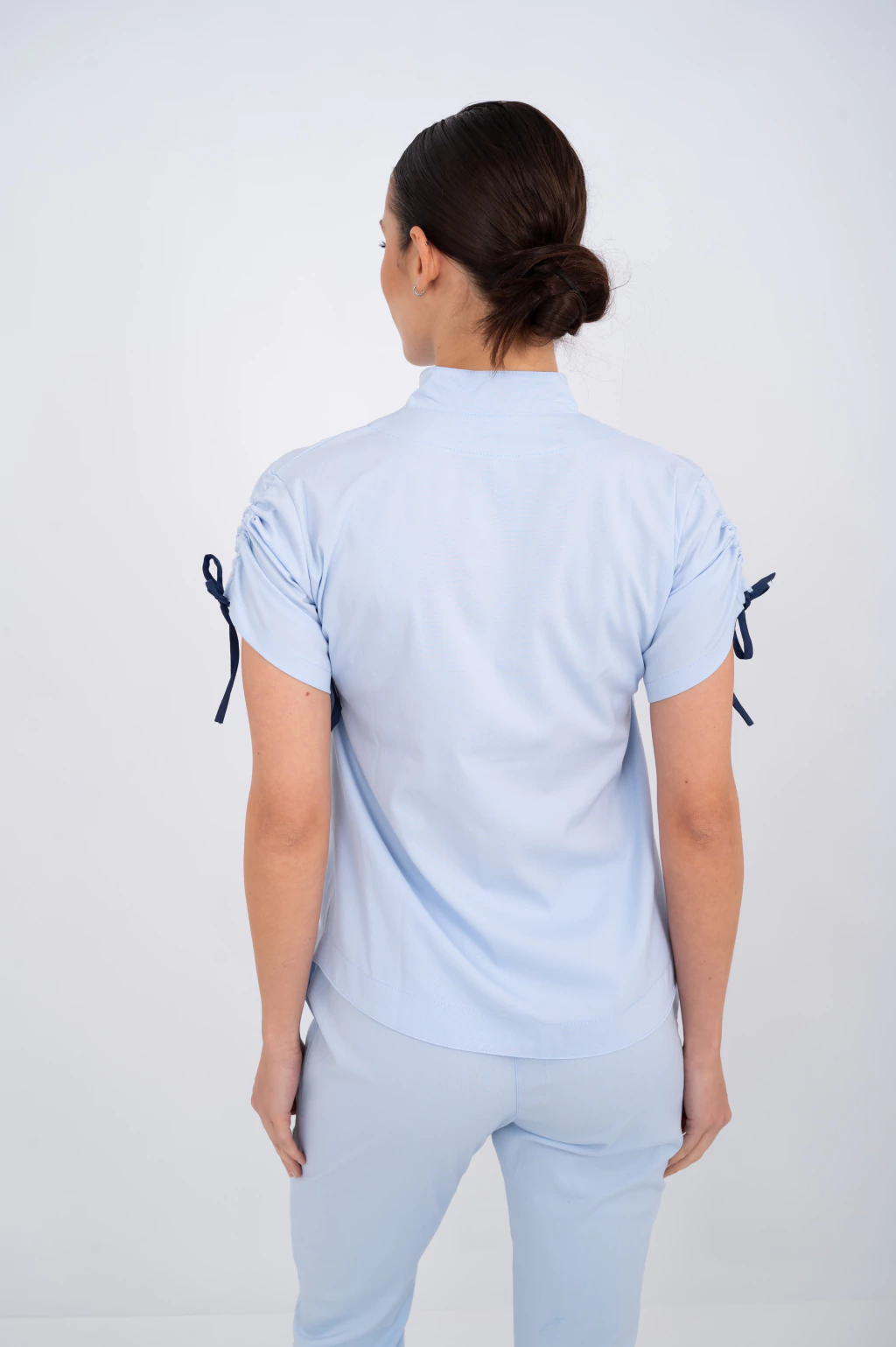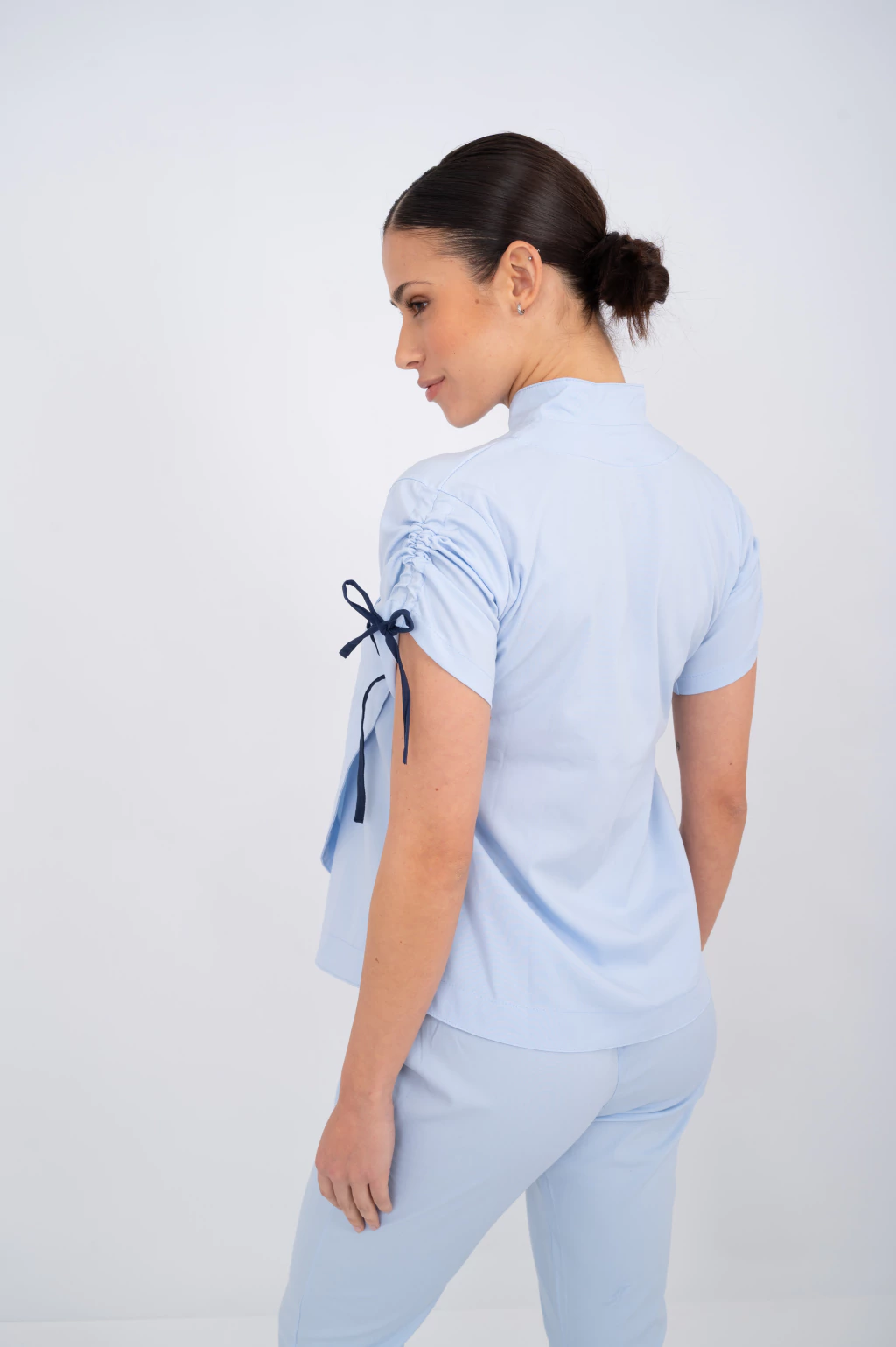 - Chaqueta de Arciel Supeflex (elastizado) tipo camisa con cuello mao. Doble solapa interna y externa con doble sistema de ajuste para regular ( INTERNO Y EXTERNO). Detalle en mangas con tiras para fruncir. Tres bolsillos frontales.